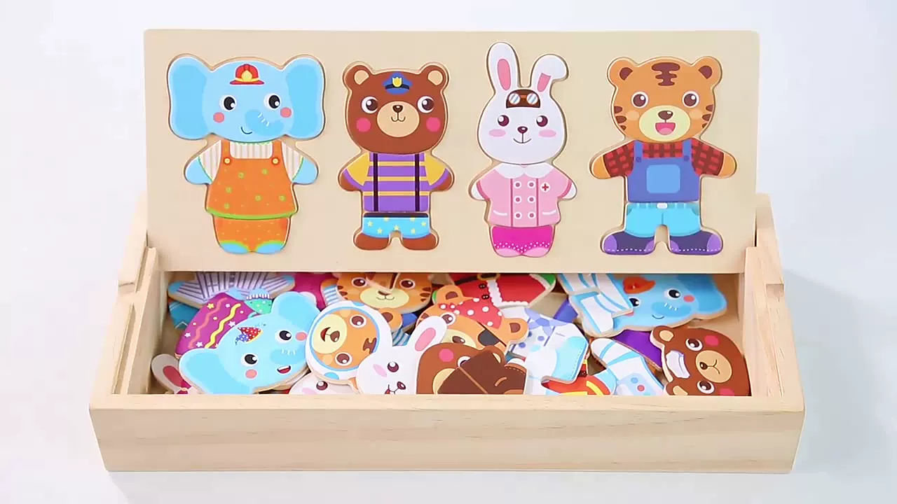الفيل الدب تغيير ملابس الأطفال التعليم المبكر خشبية اللغز خلع الملابس لعبة طفل لغز لعب للأطفال هدية
