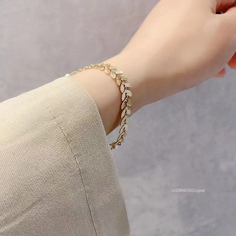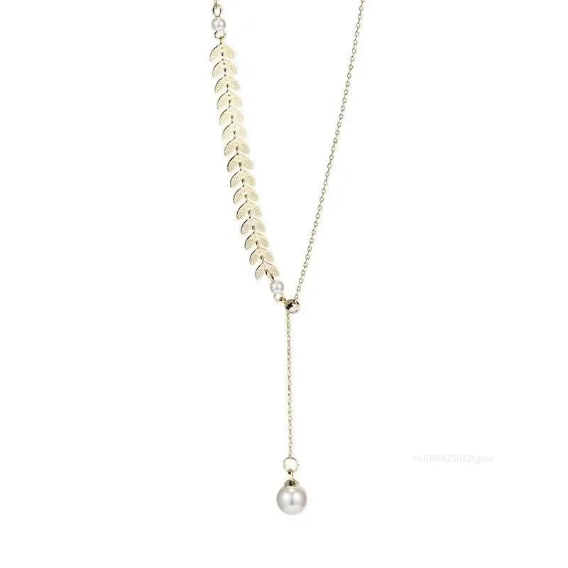 جديد بسيط القمح الأذن اللؤلؤ سوار قلادة أقراط طقم مجوهرات للنساء محظوظ الذهب اللون سوار سحر القلائد والمجوهرات