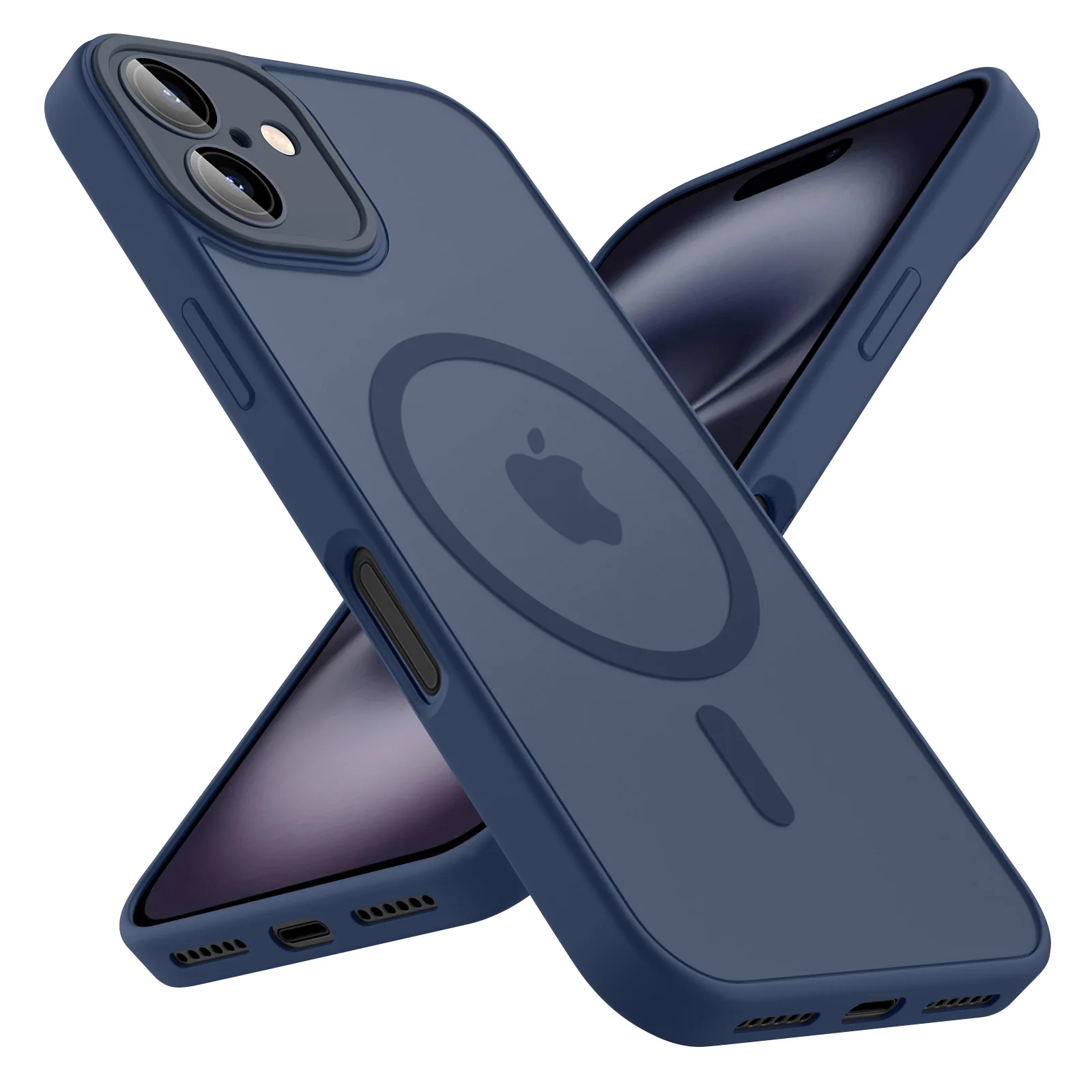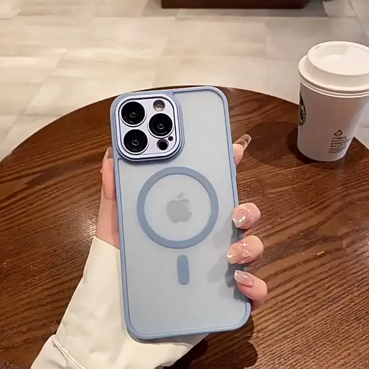 حافظة هاتف بلوري فاخرة لهاتف آيفون 16 15 14 13 12 11 Pro Max Plus 17 Air لغطاء مغناطيسي شفاف غير لامع من Magsafe