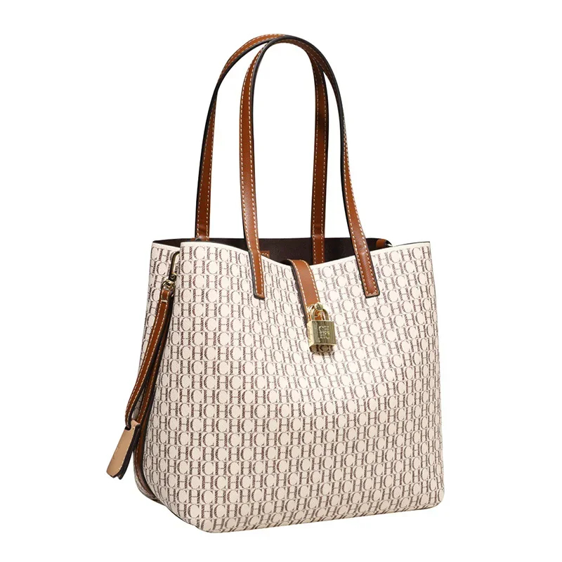 حقيبة يد نسائية ذات سعة كبيرة من CH للتنقل اليومي الراقية ومتعددة الاستخدامات من مادة البولي يوريثان بتصميم مطبوع حقيبة كروس نسائية