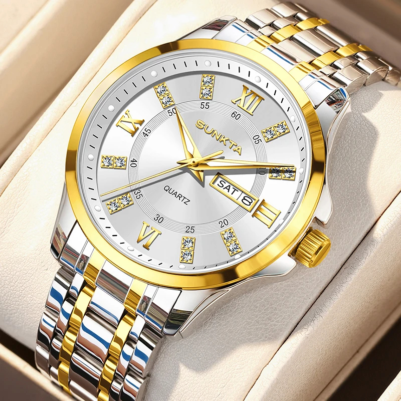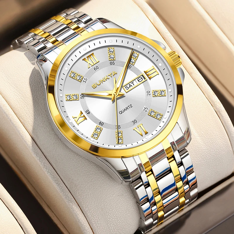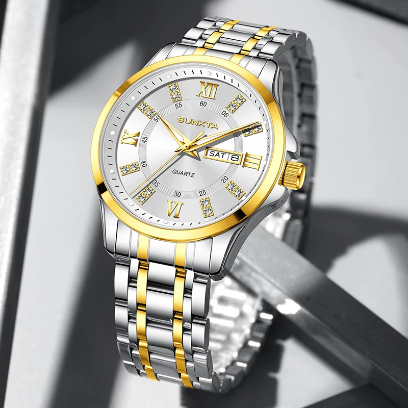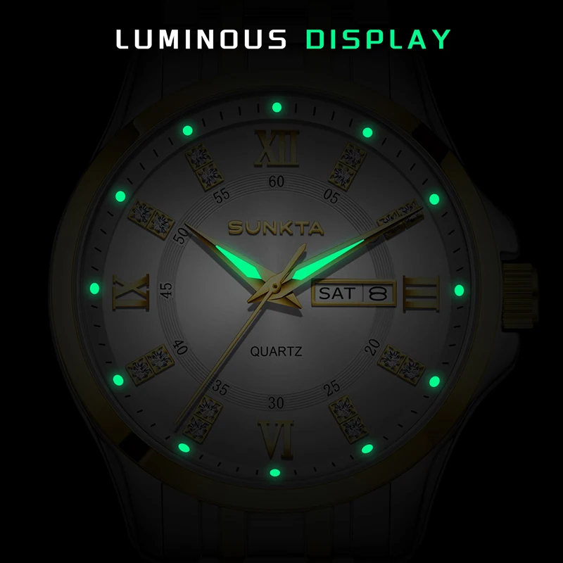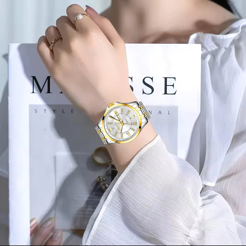 ساعة سونكتا الماسية للنساء، ساعة يد نسائية عصرية مبتكرة من الفولاذ المقاوم للماء، ساعة كوارتز كاجوال مضيئة للسيدات