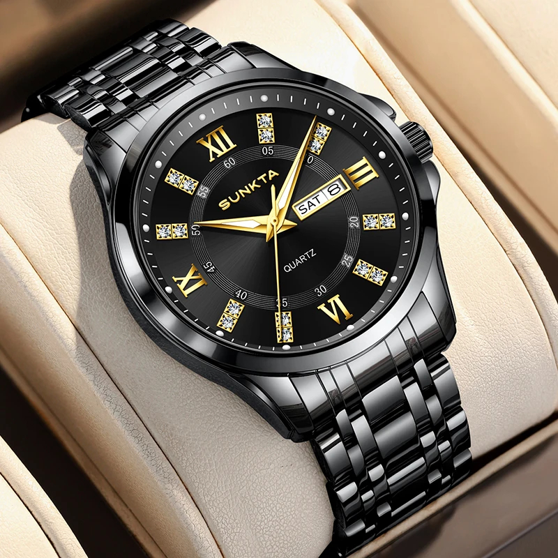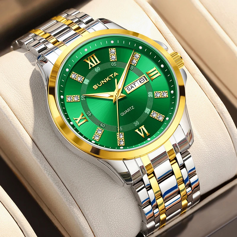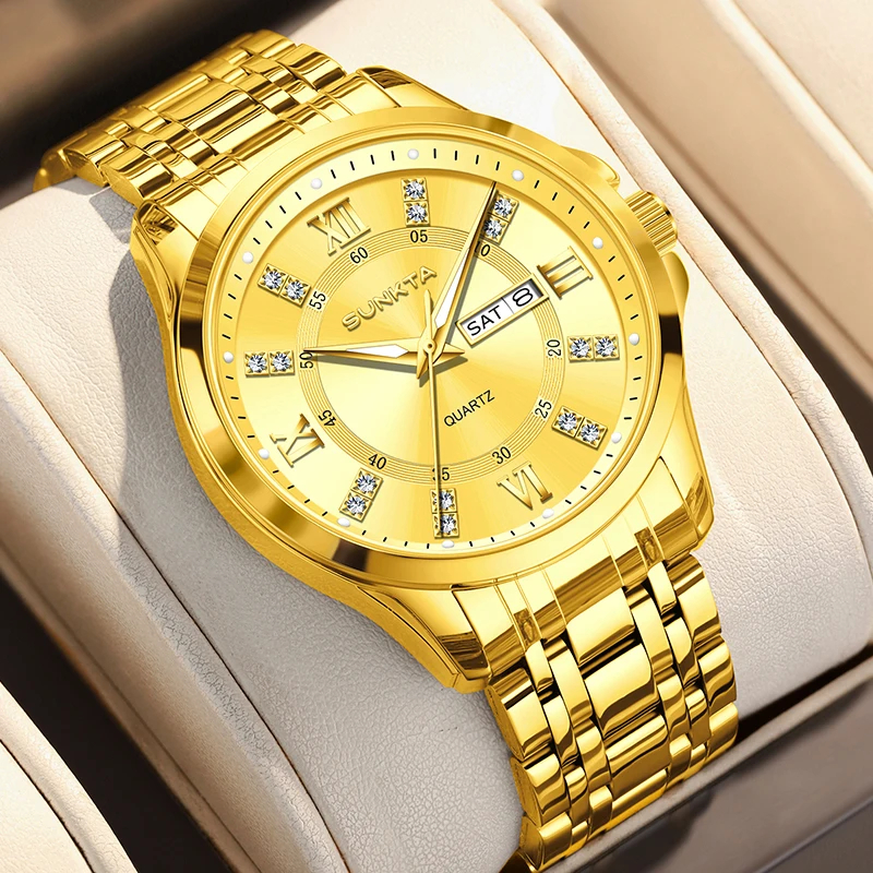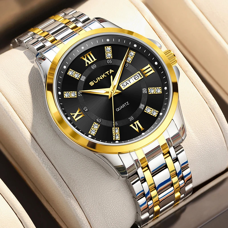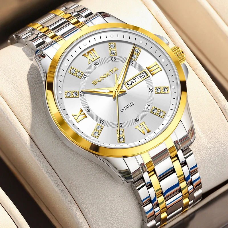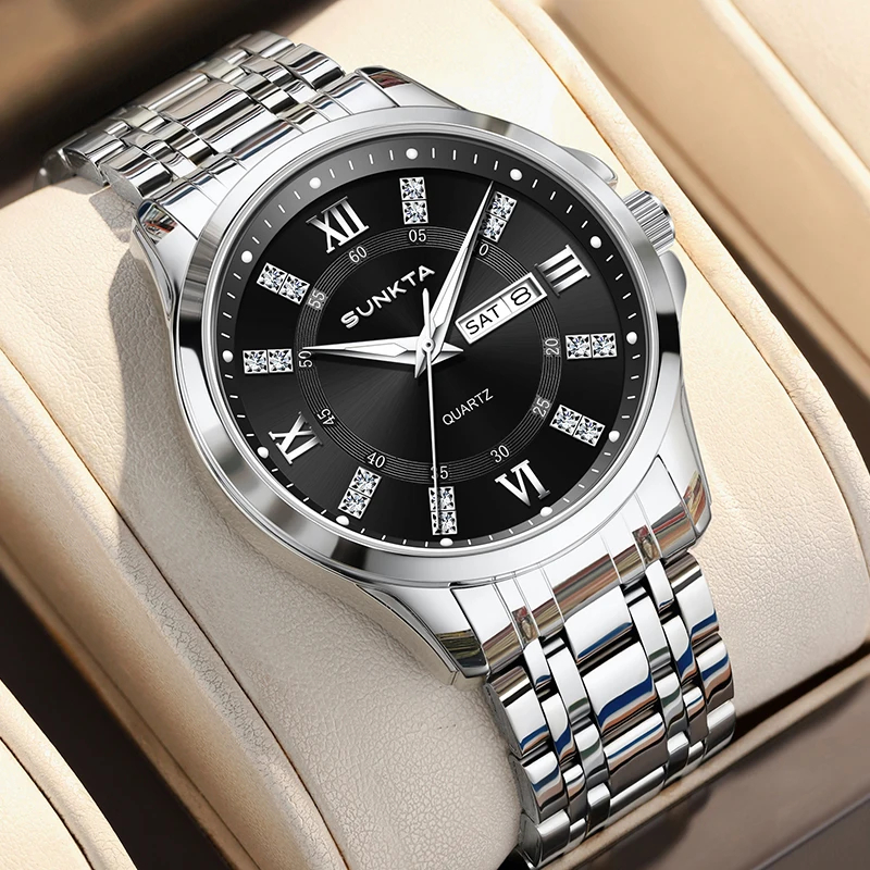 ساعة سونكتا الماسية للنساء، ساعة يد نسائية عصرية مبتكرة من الفولاذ المقاوم للماء، ساعة كوارتز كاجوال مضيئة للسيدات