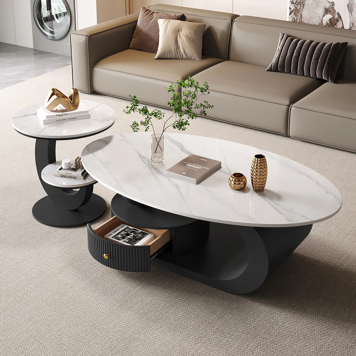 طاولة القهوة المستديرة ذات التصميم العصري والزينة الاسكندنافية لتخزين طاولة القهوة الحديثة الفاخرة أثاث الصالون الفاخر
