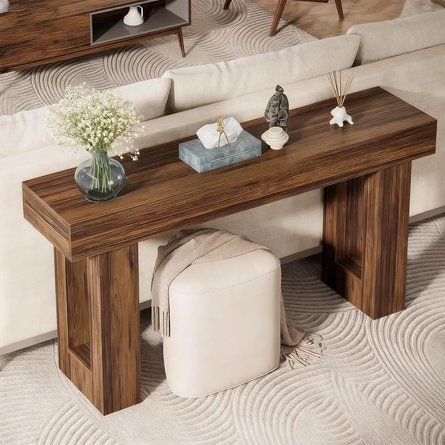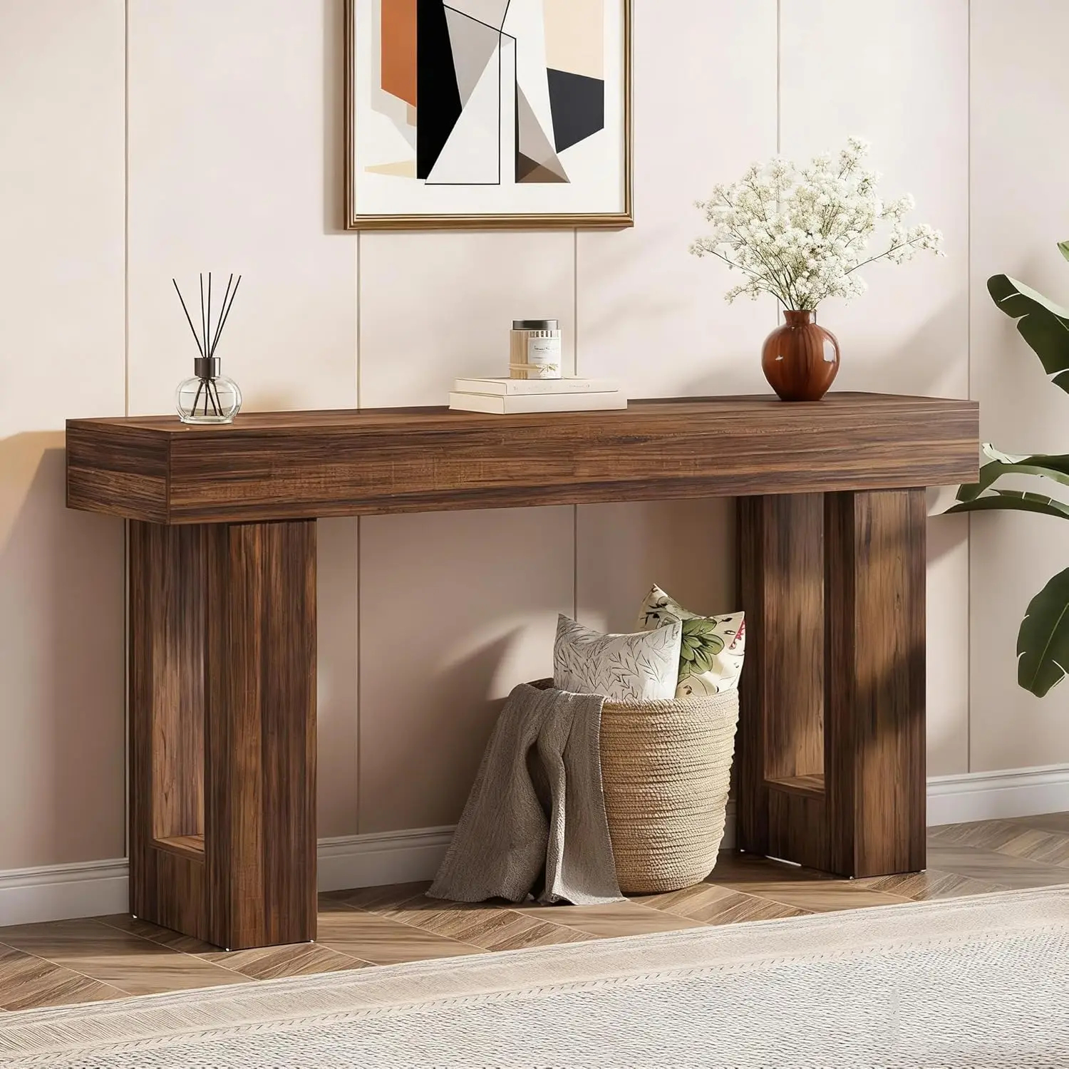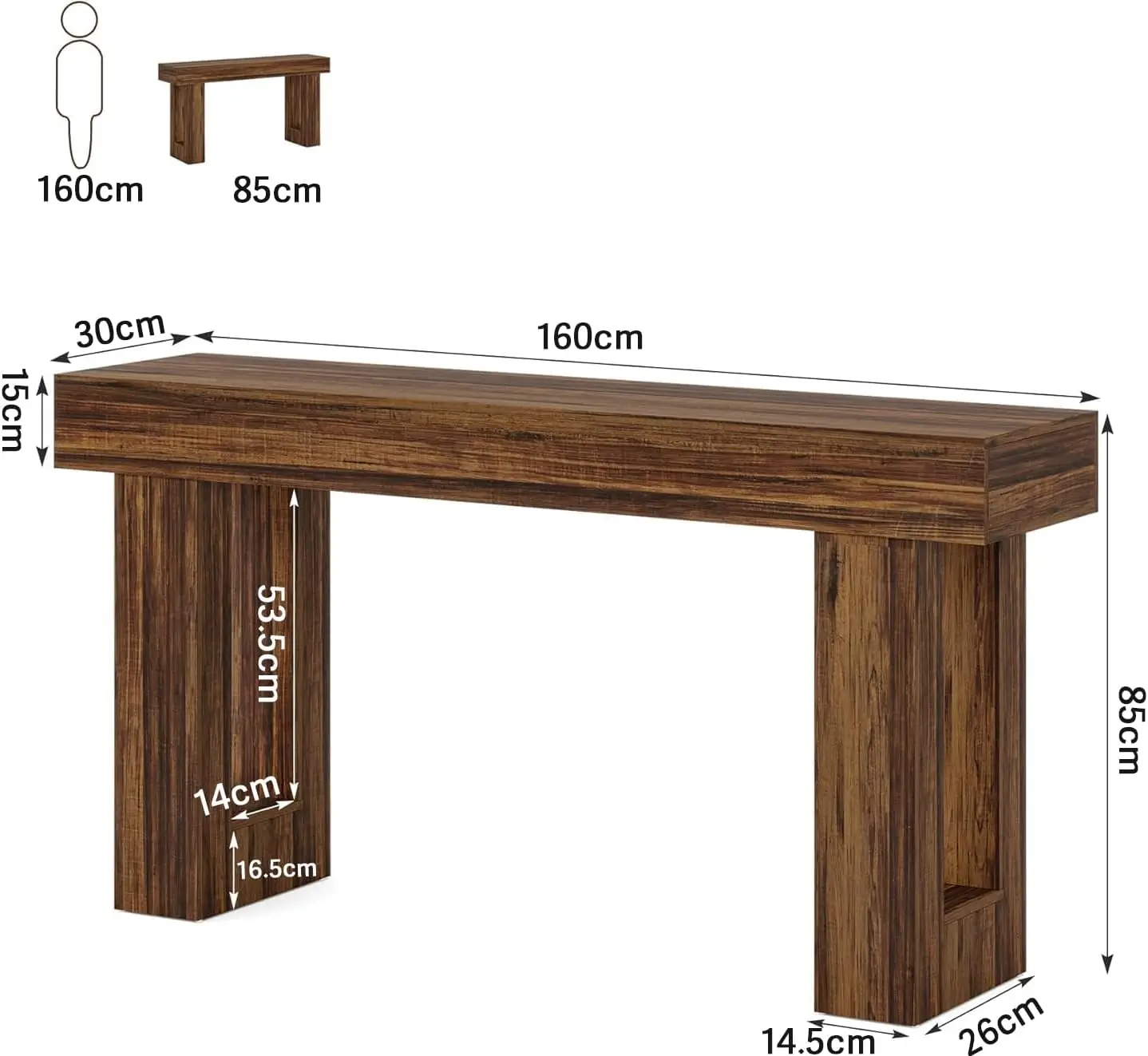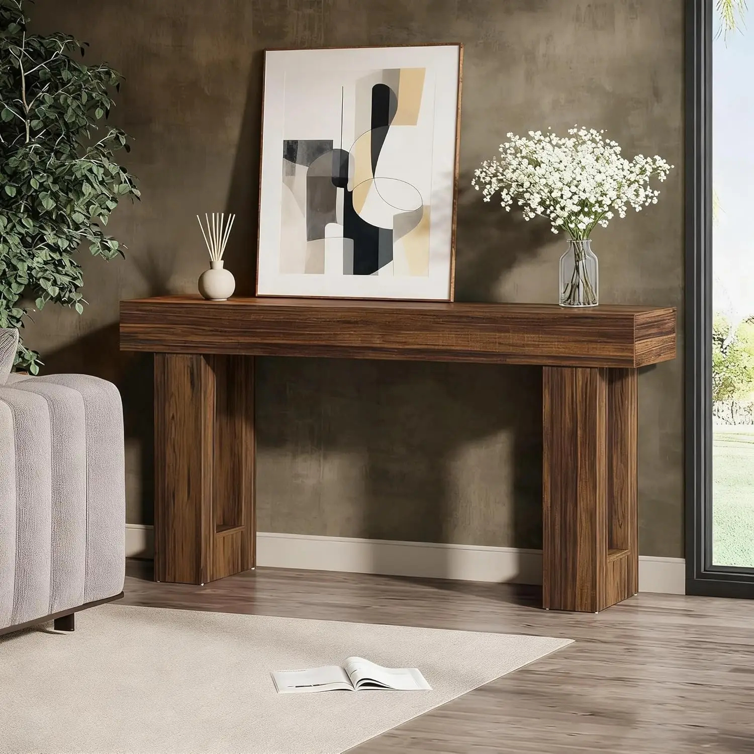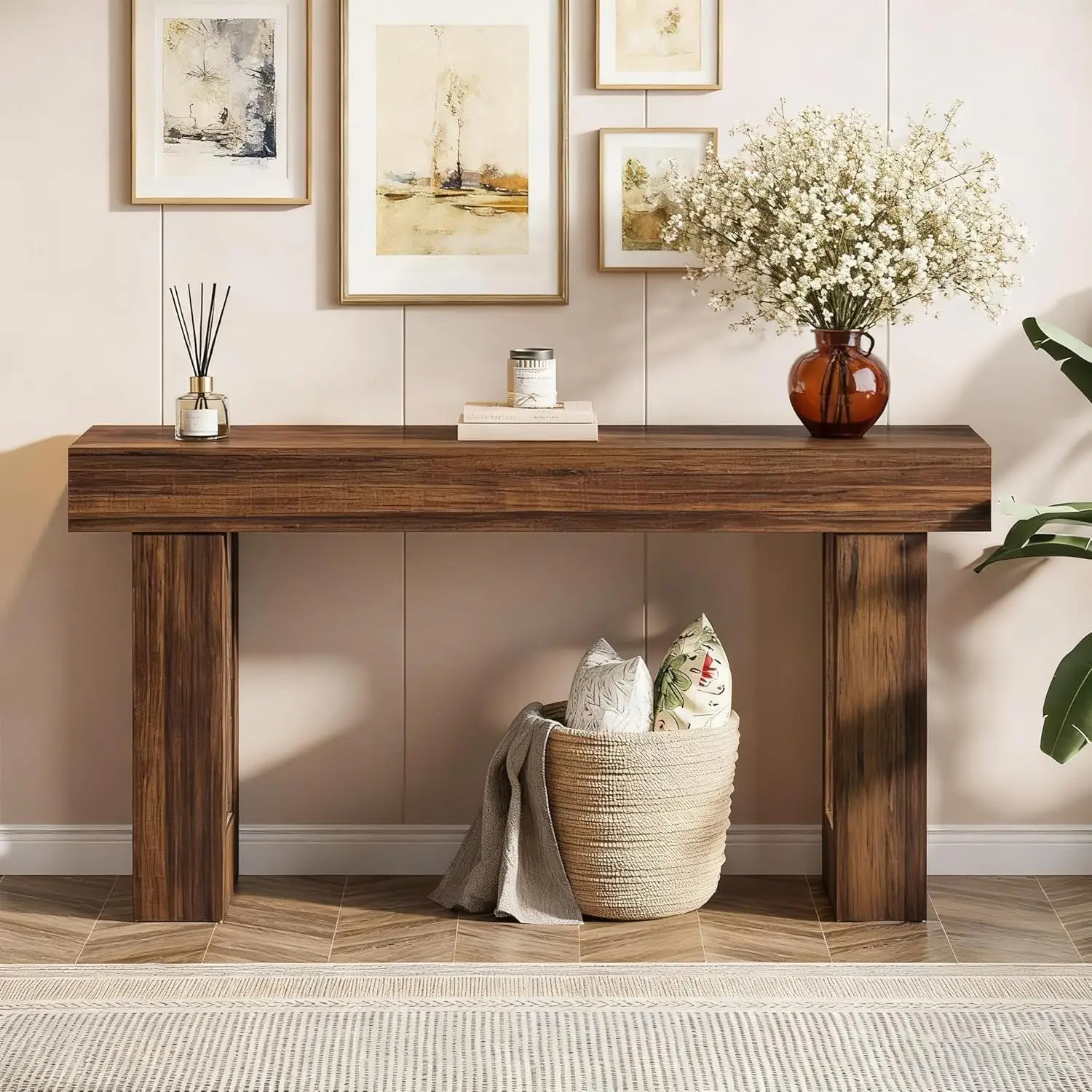 طاولة كونسول طويلة 160 سم، طاولة خشبية مستطيلة للأريكة، طاولة مدخل بأسلوب ريفي مناسبة للمداخل