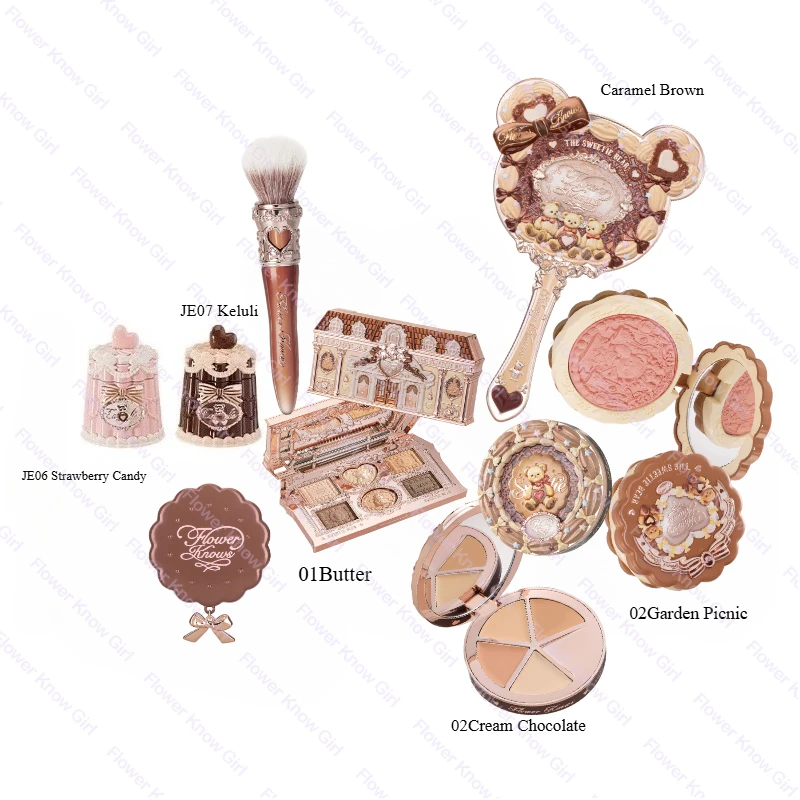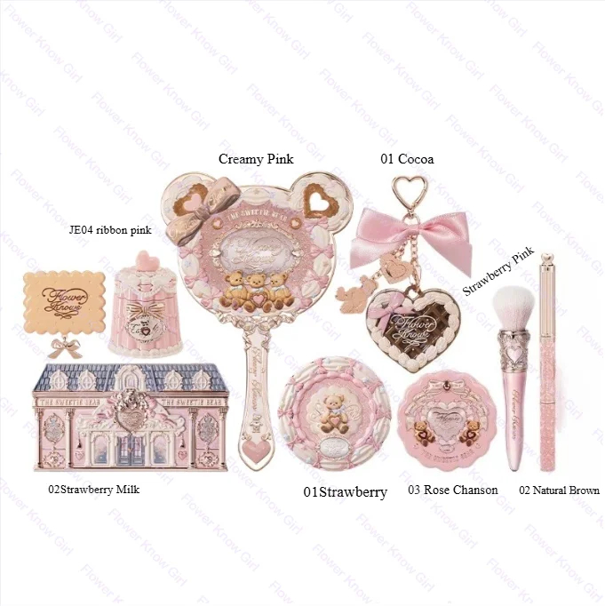 مجموعة هدايا مكياج كاملة الوجه من فلاور نوز سويت تريتس، جميعها في لوحة ظلال العيون اللامعة، صندوق هدايا جيلي للشفاه وبودرة أحمر الخدود