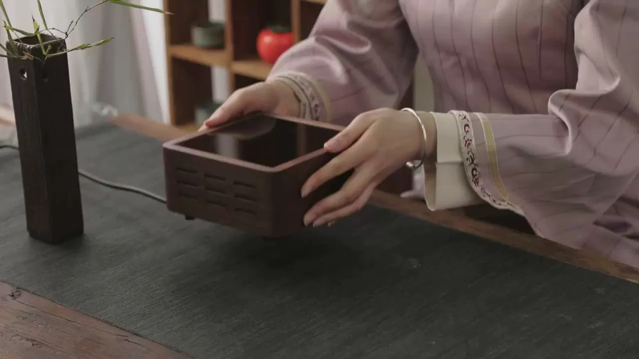 1 قطعة شاي من خشب الجوز مع قاعدة سخان شمعة للاستخدام في مطعم الفندق – سخان شاي خشبي لتزيين سطح المكتب المنزلي