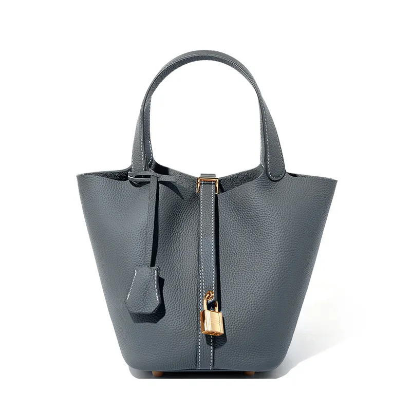 2025 موضة عادية أنثى جلد طبيعي دلو حقيبة حقيبة يد فاخرة الراقية حمل حقيبة امرأة جلد البقر حقيبة الأم وقفل معدني