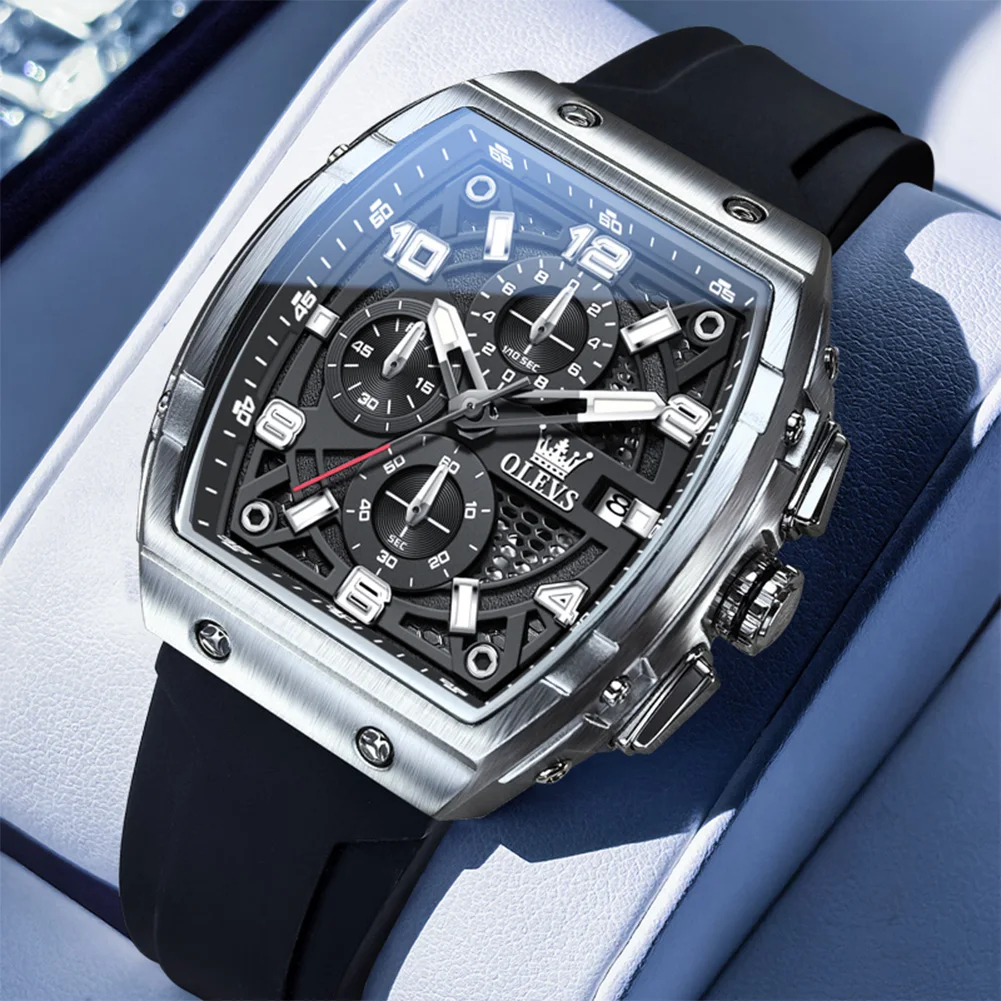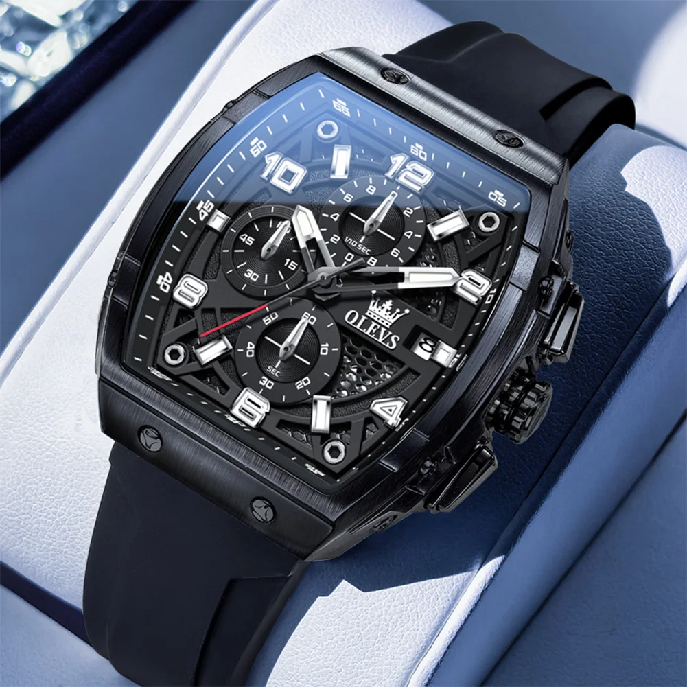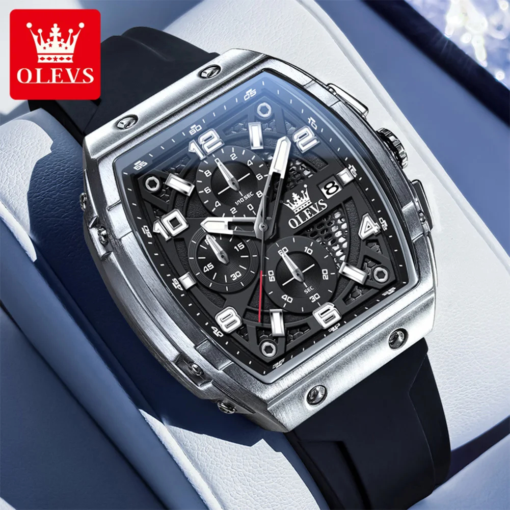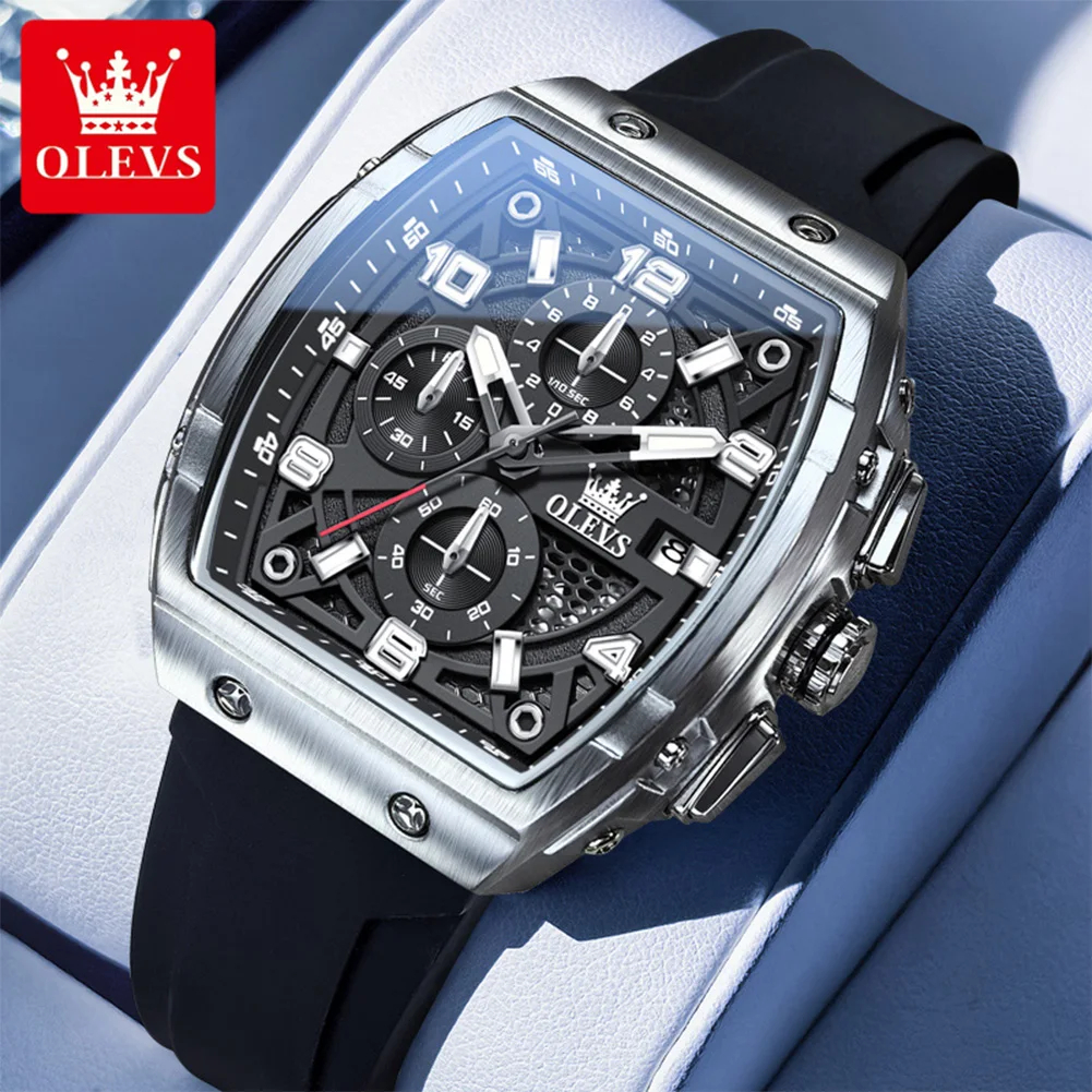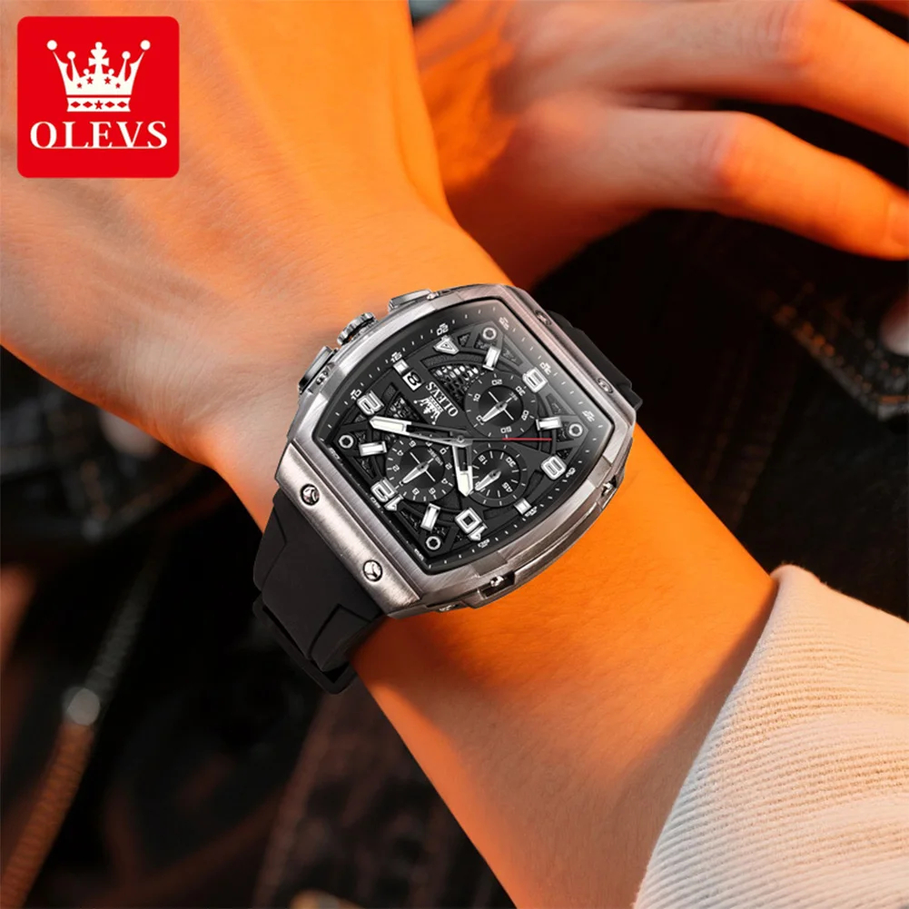 OLEVS ساعات رجالية 2976 موضة فاخرة تونيو ساعة كوارتز للرجل العلامة التجارية الأصلية حركة سيليكون حزام مقاوم للماء كرونوغراف