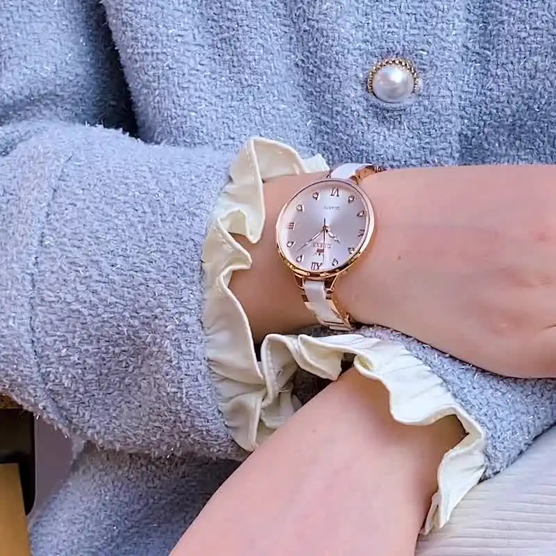OLEVS 5872 موضة فاخرة ماركة كوارتز ساعة نسائية أنيقة سيراميك ارتفع الذهب فستان مقاوم للماء ساعة نسائية Relogio Feminino